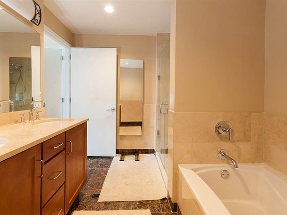 Luxurious Condo at A Condo in Downtown Jersey City with breathtaking views of the city and the river.Spacious two bedroom with two large baths,designer wall paper and blackout blinds from Hunter Douglas. Rent includes heat, hot water and gas, use of gymnasium and huge outdoor patio. One parking space included in rent. Easy commute to NYC via path station close by.
