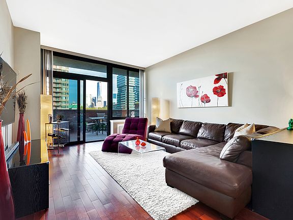 Don't miss out on this very rare J-line unit with enormous private East-facing Patio with majestic views of NYC, the Freedom Tower and Empire State building. This Top of the line unit boasts beautiful Cherry wood floors, black granite countertops and Viking Stainless steel appliances. Drive into your very conveniently located covered parking space, and venture just across the hall for a fully equipped fitness center. 24 hour Concierge, private and secured building located in the best neighborhood in Downtown Jersey City! Easy access to Exchange Place, Newport, & Grove Street PATH Stations. Restaurant row very close by and the newly renovated Newport Mall just a few blocks away. Book your appointment now!