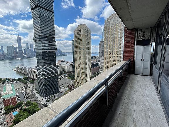33rd floor east facing unit with huge balcony, breath taking full NYC skyline views right from your balcony, living and bedroom at the prestigious A condominium, with 24/7 concierge service. Unit features: - huge balcony with tile and storage upgrades. - gas heat/stove/oven . - dishwasher, fridge and microwave - in-unit Bosch washer and dryer - custom backsplash - upgraded hardwood floor - upgraded gourmet kitchen - natural wood cabinetry, black granite counter top with an island - in-building upgraded gym with latest equipments. - assigned in-building corner parking spot. - assigned in-building storage unit (in addition to balcony storage). - children's playroom - community room with outdoor deck and bbq grills - common resident's bike rack. Building is located in highly rated school district ( PS16) next to light rail station and 5 min walking distance from either Newport , Grove st or Exchange PATH stations, 2 min from BJs and ShopRite and 5 min from Newport Center mall. 5 mins from the exclusive boardwalk/bike way extending from exchange place to Hoboken on the Hudson river front.