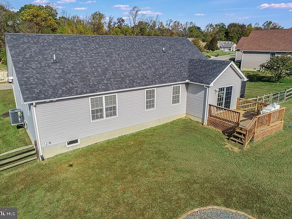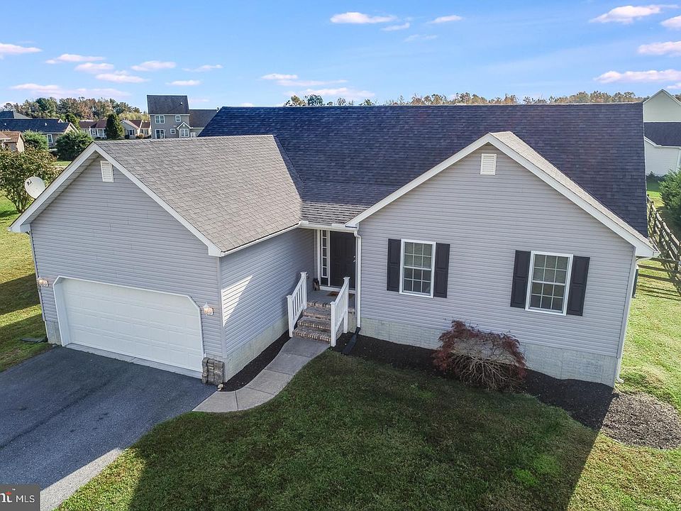 WOW! Check out this perfect 3-bedroom ranch home, it will not last long! If you are looking for a country feel but still want to be in a community, you will love Whitetail Run. This acre corner lot is exactly what you have been looking for. The inside of this home will not disappoint you, with just enough space with this open floor plan. The foyer has hardwood flooring and leads to the large family room. The family room offers cathedral ceilings, a ceiling fan, and has just be painted! The kitchen is open to the family room for easy entertaining. All the stainless appliances are included and there is seating at the counter. The breakfast area offers space for your dining table and a slider leads to the deck overlooking the backyard. The backyard is fenced and features a fire pit area!. The master bedroom is located at the rear of the home and features a dbl window, a ceiling fan, a walk-in closet, and its own full bathroom with dual sinks. There are two more comfortable bedrooms located in the front of the home. There is full shared bathroom near the bedrooms. A kitchen panty and a large laundry room near the kitchen and garage finish out this main floor level. The unfinished basement has an egress window and is ready for you to finish it however you like! This basement gives plenty of storage room even if you finish some of the space into a rec room. The 2-car garage has a side door for convenience. The lot offers plenty of space for your boat or camper. The storage shed is a great space for your lawn equipment and other toys/tools. This home is Move in Ready, so schedule your showing today, it will not be around for long!