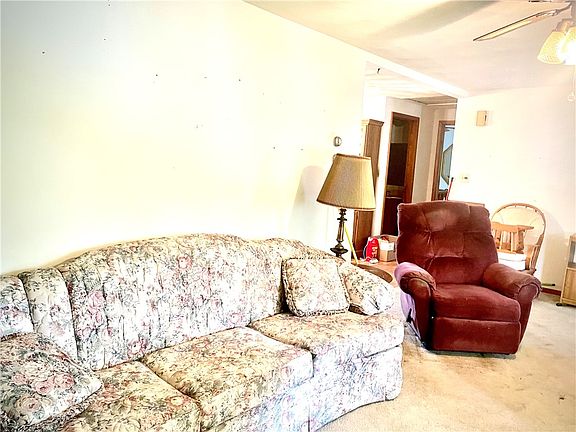 Welcome home to this lovely country setting two-bedroom home on an amazing 1.38 acre lot! This home boasts a detached oversized garage, covered back porch with a sliding door into the dining area. Inside, you'll find the large, open eat-in kitchen complete with appliances, a huge living room with a large bow window flooding the space with natural light. A large primary bedroom, a full bathroom, and a second bedroom with access to the attic and full basement, complete with a bathroom and a second kitchen, complete this layout! This home was custom-built and has only had one owner.