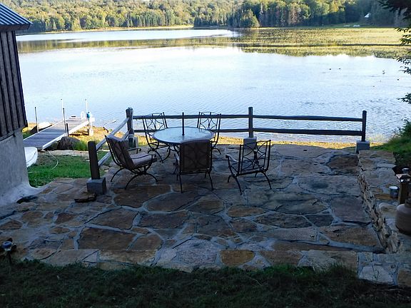 107’ lake front, south facing camp with unobstructed views of Goodnow Flow from inside & outside. Stone bulk head on shoreline that will never have to be replaced again. stone fire place and patio. There is $40, 000 worth of custom stone work. Knotty pine interior, hardwood floors. Brand New bath house inside and out. Pictures were taken last fall after the lake was lowered. State land close by, beautiful views of wildlife wild turkeys, deer, bear, etc.