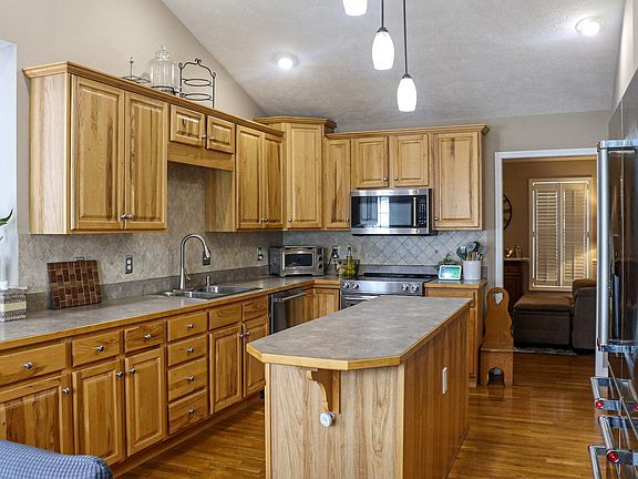 Beautiful brick ranch home in Hillcrest Subdivision with an extra lot. This home features 3 bedrooms and 3 full baths. Living room has gorgeous cathedral ceilings with hardwoods that were just refinished. Large kitchen with stainless steel appliances and lots of cabinets and counter space. The basement area features a rec room along with a theater room, wet bar and lots of storage. Step outside and enjoy the beautiful views off the 17X20 Trex deck and another patio with stamped concrete and a hot tub. The 23 X 6 covered front porch is just waiting for your swing. Also there is a four car over sized garage. Come take a look at this charming home today! This home is being sold with the adjoining building lot making an awesome yard.