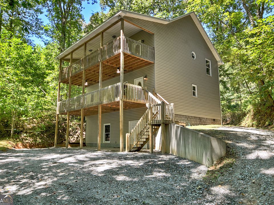 Affordable, spacious, and move-in ready! This charming 3-bedroom, 2-bath home is everything you've been searching for. Designed with easy living in mind, it features low-maintenance vinyl siding, a generous parking area, and an expansive deck on the main level-perfect for outdoor entertaining, family gatherings, or simply soaking up the mountain air. Inside, you'll be impressed by the bright and airy feel created by hardwood floors, large rooms, and neutral paint tones that complement any style. The main level offers a welcoming living room, a full bath, a dedicated food pantry, a spacious laundry room, and a large kitchen that's ready to bring everyone together. Upstairs, you'll find two roomy secondary bedrooms along with a private primary suite that boasts its own balcony retreat-the perfect spot for a morning coffee or a quiet evening unwind. This home also includes a partial crawl space, ideal for storage, giving you the extra room you need to keep things organized and out of sight. Conveniently located between Blue Ridge and McCaysville, you'll enjoy quick access to shopping, dining, outdoor recreation, and all the charm of North Georgia living.