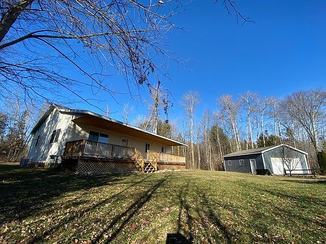 Beautiful 3, possible 5 bedroom 3 bath home, with a 24x32 pole barn sitting on 2.55 acres. This home was built in 2005 and features 1288sq ft on the main level and another 1288 in the basement. On a paved rd not far from town but sitting back in surrounded by trees to feel more private. It has been well cared for and offers a new roof 2020, and central air 2020. When you walk in you will feel right at home with a freshly painted living area that boasts of cathedral ceilings, an open concept living, dining, and lots of custom features throughout come check out this one today.