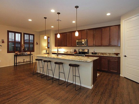 This beautifully appointed 3 BR, 2 BA home is located in a small, secluded enclave of homes on the west side of Escalante off Houghton Rd, featuring a gourmet kitchen with 40'' cabinets,granite counters,SS appliances, a large island and pantry. The Kitchen opens to the Great Room and Dining area giving a large open feel with tile floors that resemble wood. Split bedroom plan w/large Master BR,shower area and walk-in closet. Secondary bedrooms are of good size with large closets. Den can be used as an office. Pool sized rear yard with wonderful sunset and mountain views. Covered patio w/paver extension. Common area behind rear wall. This home is in pristine condition. PLEASE DO NOT LET SMALL DOG OR CAT OUT THE FRONT OR BACK DOOR. They are very quick and move fast.Keep these doors closed