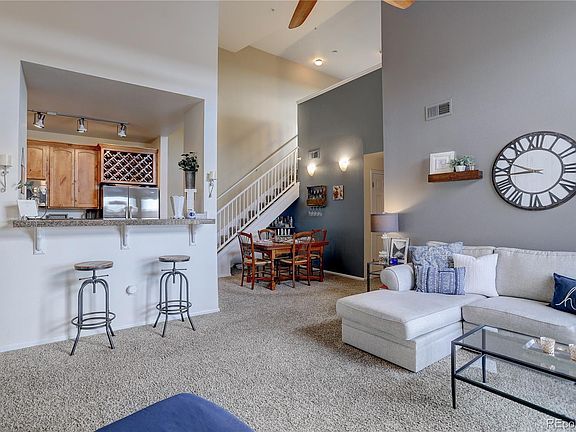 Beautifully appointed 3rd floor Penthouse condo. Remodeled and gorgeous throughout! 2 bed/2 full bath plus great loft. Open living room allows you to enjoy family time with a gas log fireplace, vaulted ceiling, and fan. Easy access to the balcony! Kitchen boasts 42" upgraded cabinets, stainless appliances, Granite countertops, and much more! Laundry closet allows for stackable washer/dryer and has a custom barn style door! Designer paint throughout! Owner's bedroom amenities include ceiling fan, private bath and walk-in closet. Spacious owners bath has newer vanity, soaking tub and included make-up table. Second bedroom is spacious with plenty of natural light, mountain views and walk-in closet! Both bedrooms have well-maintained neutral carpet, overhead light fixtures, and window coverings. Hall bath features include updated vanity, tile floor/surround and more! The loft makes a great "Zoom" room/office or potential 3rd bedroom for guests. The balcony has a large storage closet and spectacular mountain views! Central A/C! Convenient access to Cherry Creek Reservoir, Village Green Park, and bike paths. Short 5-minute walk to the Dayton Light Rail Station. Tons of nearby stores and restaurants. Community dues include access to the clubhouse, fitness center, outdoor pool and hot tub. Cherry Creek School District.