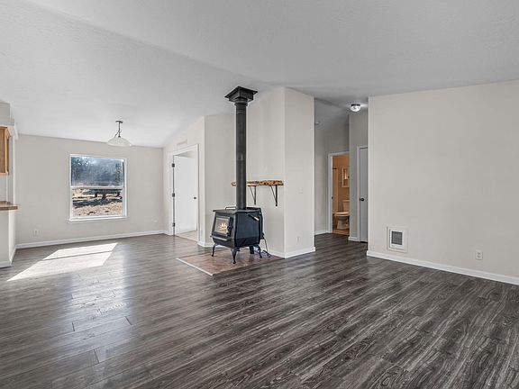 Don't miss this thoughtfully updated home on a private corner lot w/2.1 acres of partially fenced property! Open floorplan features an abundance of natural light & updates throughout including flooring & paint. Main living area has a cozy wood burning stove & large windows. Kitchen is spacious w/plenty of cabinetry & counter space + a breakfast nook & separate dining area that could also serve as a small office space! Well sized primary bedroom features vaulted ceiling, bathroom w/dual vanities, soaking tub & step in shower. Two additional bedrooms share a full bath as well. Storage room off laundry area, attached two car garage, storage building, concrete patio, private well, & plenty of space for all your toys & critters!