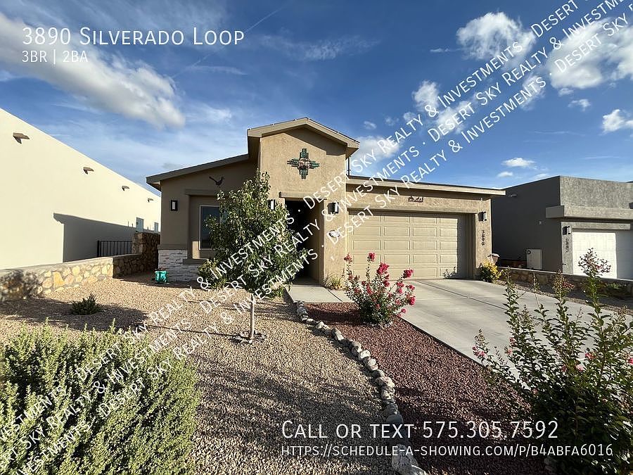 Welcome to this newly built 3 bedroom, 2 bathroom home in the heart of Las Cruces, NM. This modern themed house features a spacious fully equipped gourmet kitchen with plenty of natural light, perfect for cooking and entertaining. Enjoy the convenience of a 2-car garage, covered patio, and beautifully landscaped fully fenced backyard with gazebo for added privacy and outdoor enjoyment. Stay connected with high-speed internet and relax in the comfort of refrigerated air. Located in a peaceful neighborhood, this spacious home is the perfect retreat for anyone looking for a comfortable and convenient living space. Small Dog under 30lbs permitted with approval and additional monthly fee. Max 1 pet. No aggressive breeds. Must be at least 1 year old and spayed or neutered. Tenant responsible for all utilities. Deposit equivalent to 1 months rent. Tenant responsible for yard maintenance. Landscapers will be sent out annually to trim trees and shrubs. Minimum 1 year lease. $30 application fee. No smoking allowed anywhere on property. Renter's insurance is required. 2 Car Garage Covered Patio Fully Equipped Kitchen Fully Fenced Yard High Speed Internet Landscaping Modern Themed Natural Light Newly Built Home None Professional Landscaping Quiet Neighborhood Refrigerated Air Spacious Kitchen