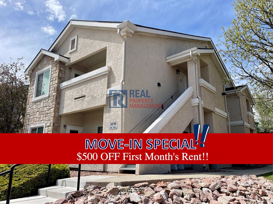 Move-In Special: Apply Now and Get $500 OFF Your First Month's Rent if Leased by October 15th! Call us for more information. This spacious and well-maintained unit features a private balcony with breathtaking mountain viewsideal for enjoying your morning coffee or unwinding at sunset. Inside, you'll find high ceilings, a cozy fireplace, and an open-concept layout complemented by brand-new granite countertops and a charming breakfast nook. The kitchen comes fully equipped with stainless steel appliances, and the in-unit washer and dryer make daily living even more convenient. The primary bedroom includes a generous walk-in closet and access to one of the two full bathrooms. There's no shortage of storage with an outdoor shed off the balcony and ample closet space throughout the home. Enjoy year-round comfort with central air conditioning and ceiling fans. As part of the community, you'll have access to premium amenities including a pool, clubhouse, fitness center, and tennis court. With assigned covered parking and everything you need close by, this home is a rare find. Location Highlights: Nearby Schools: Otero Elementary, Fox Meadow Middle School, Harrison High School Just 5 minutes to Gate 3 at Fort Carson perfect for military commuters Only a 3-minute drive to Quail Lake Park for outdoor recreation and trails - Available Now - Pets upon owner approval (HOA allows 1 pet max, under 30 lbs) - Renters insurance required - 1 covered, assigned parking space included - Tenants are responsible for gas, electric, water, and trash - $150/month HOA fee covers water, trash, and community access Real Property Management Colorado is proud to offer deposit-free living to qualified renters through Obligo! We understand that moving costs can add up, so we want to extend financial flexibility to our residents. When you move in with us, you can skip paying a security deposit and keep the cash for activities you care about! Real Property Management Colorado Equal Opportunity Housing All leases subject to application, administration and processing fees. Prices and availability subject to change. Real Property Management Colorado, LLC cannot verify the accuracy of property information listed on third party sites. Please visit Real Property Management Colorado, LLCs website to confirm property information. The prospective tenant(s) have the right to provide to Real Property Management Colorado a portable tenant screening report, as defined in section 38-12-902 (2.5),Colorado revised statutes; and if the prospective tenant(s) provide Real Property Management Colorado with a portable tenant screening report, real property management Colorado is prohibited from charging the prospective tenant(s) a fee for real property management Colorado to access or use the portable tenant screening report. In order to qualify, prospective tenant's application must be considered complete and include the following documents at the time of submission: a completed application for everyone 18 and older, unexpired government issued photo-ids, proof of income, a signed brokerage disclosure, and a portable tenant screening report containing credit, rental history, and criminal background information within the last 30 days and showing the prospects' name, contact information, verification of employment and income, and last known address. Applicants who do not submit a completed application based on the above will be considered incomplete and will not be considered for the property. Clubhouse Condo Mountain Views N/A Pool Walk In Closets