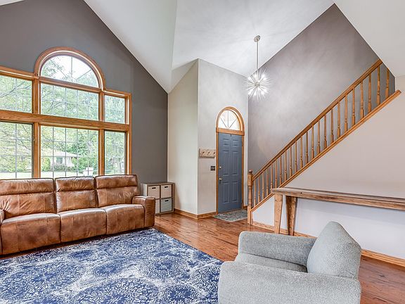 Home Sweet Home awaits! Located in desired Knolls subdivision in Randall, this brick 2 story is situated on almost half an acre. This Modern country chic 3 bedroom will not disappoint. Vaulted living room with gorgeous windows, boasts a natural fireplace. Hardwood throughout the dining room and living room. Kitchen features gorgeous ceramic tiled floors, two-toned cabinets, butcher block countertops, pantry, Over-sized custom breakfast bar overlooks the expansive deck. First-floor laundry room. Huge master bedroom with a beautiful en suite bathroom. Separate shower, jetted tub, lots of storage. 2nd & 3rd bedrooms are connected by a jack & Jill bathroom. Full basement waiting for your finishing touches. Large backyard perfect for outdoor fun., complete with fire-pit.