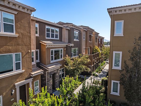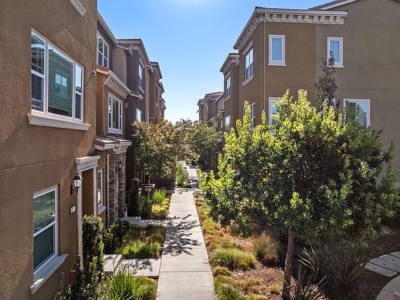 Welcome to this stunning townhome, perfectly positioned at the end of a quiet cul-de-sac for added privacy. It is the only unit in the community featuring a gas fireplace, creating a cozy and inviting atmosphere. The ground floor offers a formal entry, a bedroom, and a private full bathroom. On the bright and open second floor, you’ll find a spacious living and dining area with high ceilings and large windows, ideal for entertaining. The well-appointed kitchen includes ample cabinetry, granite countertops, a large island with a breakfast bar, stainless steel appliances, a gas stove, and a pantry. This level also provides access to a large private balcony, perfect for outdoor relaxation. A convenient half bath and laundry closet are also located on this floor. The top floor boasts a luxurious primary suite, featuring a dual sink vanity, quartz countertops, tile flooring, a large step-in shower, and a walk-in closet. The third bedroom also has a walk-in closet and its own private bathroom with a quartz vanity, tile flooring, and a shower over tub. Attached 2-car garage. Enjoy nearby community playground and easy access to major commute routes, as well as leading tech companies like Google and Facebook, along with convenient proximity to shopping, dining and much more!