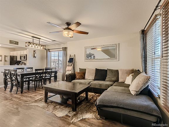 Welcome Home to this beautiful 3 bed / 2 bath home that sits on an oversized corner lot in The Meadows. Plenty of great updates to the home, both in the kitchen with new stainless steel appliances, new lighting fixtures, and new laminate wood flooring throughout. With tons of outdoor living space on the large concrete patio, you have room for both an eating area and fire pit lounge area. Laundry on main floor, with washer + dryer included. Primary Bedroom has plenty of natural light and an en suite Full Bath. Second Bedroom has a walk in closet with an awesome barn door! Attached 2 car tandem garage. Just minutes from all that Castle Rock has to offer with restaurants, shopping, and entertainment! You do not want to miss this one!