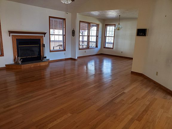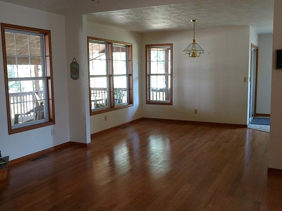 Enjoy space, privacy & comfort in this charming three-bedroom home nestled within a quiet country setting. Mature trees provide a lush backdrop & there are 4 acres of land to explore. Inside, elegant hardwood floors flow throughout & a neutral color scheme creates a modern feel. Open-concept living is offered w/ a spacious great room w/ a vaulted ceiling & cozy fireplace. The kitchen is well-appointed w/ a dishwasher, plenty of storage & a dining area. There is also a formal dining room for more intimate affairs. The large master suite features double closets & access out to the covered wrap around deck. An attached two-car garage ensures convenience and there is an extra detached two-car garage and a heated shop.