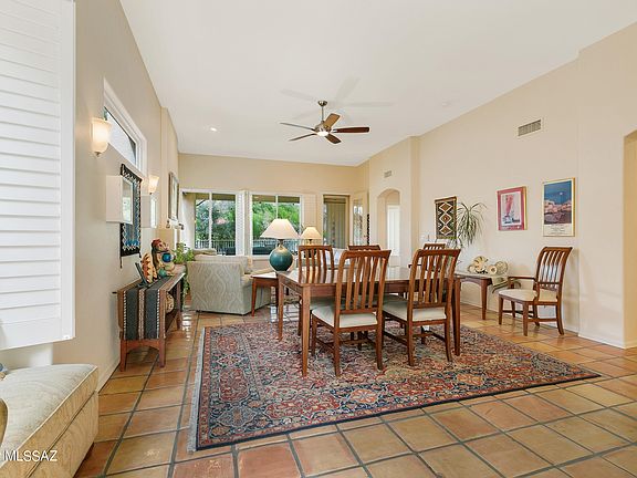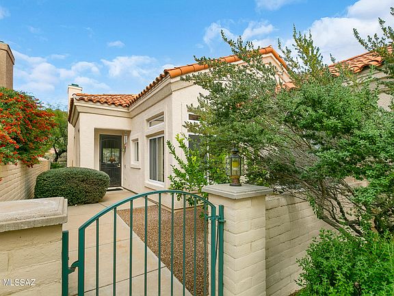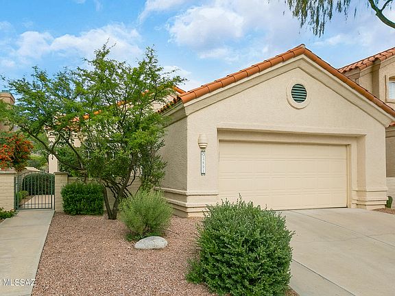 Impeccably beautiful 3BR/2BA home with gorgeous mountain views in desirable La Paloma! Open floorplan offer lots of natural light and high ceilings. Saltillo tile throughout, plantation shutters, ceiling fans in every room and built-ins for added storage. Cozy up to the wood burning fireplace in the great room & enjoy views of the breathtaking mountains. Spacious kitchen offers lots of counter space & cabinets, including roll-out shelves and pantry closet. Large primary suite includes nice walk-in closet and lovely views of the backyard with mountainous backdrop!! Inviting backyard with covered patio & brick pavers, artificial turf, low-care desert landscaping & amazing Catalina Mountain views, great for entertaining!! NEW heating/cooling!! 2 car garage with built-in storage cabinets. This gated community is convenient to AJ's, La Encantada Mall, restaurants and more. Golf, resort & fitness memberships can be obtained at La Paloma Country Club.