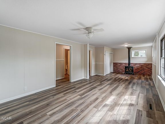 another 20x40—perfect for storing toys, tools, or creating your dream workshop. Inside, the home features a brand new kitchen with new appliances, a refreshed bathroom, new laundry hookups, and updated flooring thru-out. Recent upgrades also include new drywall, paint, electrical panel, furnace, central air, and a well pump. Upstairs, you'll find a spacious second floor room that can serve as a bedroom or bonus living space. The cozy living room features a gas fireplace, and the home also includes an attached one-car garage. This country retreat is move-in ready, offering comfort, functionality, and easy living both inside and out.