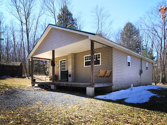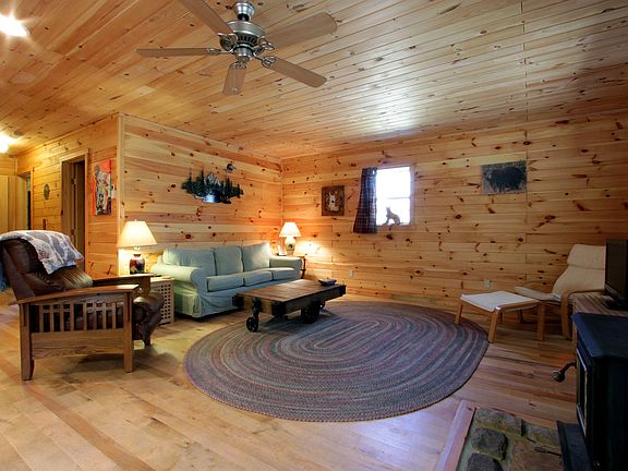 Escape to the country in this cozy home on almost 6 private acres. Built in 2009 this home boasts a cozy knotty pine interior with hardwood floors throughout. Open floor plan with gorgeous Hickory cabinets in the kitchen. Access to public water and electric a major plus in this private setting. Home has electric heat and A/C as well as a wood burning stove in the living room. Fully insulated. Near Sate Parks for access to many outdoor activities. Perfect family home or a very upscale private retreat.