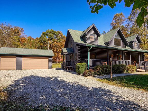 Charming and well maintained Hocking County log home on 15 acres which includes an additional 22.2 acre parcel. Located between Lake Hope and the Hocking Hills this property is on a quiet and scenic road with on site hiking trails. Additional turn key business opportunity for Hocking Hills vacation rental that will offset your costs to own! Being sold fully furnished and includes Amish built out building and 3 car detached garage. Large outdoor fire pit. Freshly stained cabin and deck. First floor master suite and two upper level bedrooms with full baths. Floor to ceiling windows in the great room with a cozy gas fireplace. Property joins Wayne National Forest. This is a must see!