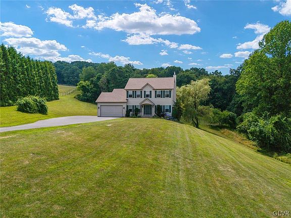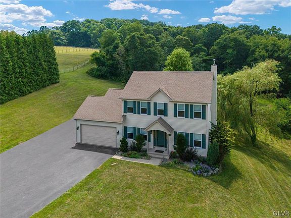 Welcome to your dream retreat in the heart of Saucon Valley. This spectacular 3 bed, 2.5 bath sanctuary is tucked away on 3.7 acres of pure tranquility. Step inside & be enveloped by the beauty that fills this home! Upon entering, you are greeted by gleaming hardwood floors & an abundance of natural light that lead you through the inviting rooms. The open-concept kitchen is an entertainer’s delight, featuring updated quartz countertops, brand new flooring, ceramic tile backsplash & a charming eat-in area. The formal DR provides an elegant space for entertaining, while the FR offers a cozy, inviting ambiance featuring a gas fireplace & stunning built-ins, perfect for relaxing & enjoying quality time with loved ones. The master BR suite is a true sanctuary, complete with a renovated en suite bath & walk-in closet. In the front bedroom, a hidden bonus space is ready to be transformed into a walk-in closet, office or gym. The spacious walk-out basement provides a blank canvas of endless possibilities for customization. Outside, your private oasis awaits! The beautiful surroundings invite you to savor the serenity, whether you're watching the sunset from your newly built back deck or exploring the expansive property. With lush grounds & private surroundings, this gem offers a perfect blend of elegance & comfort, making it an ideal sanctuary for those seeking a serene & luxurious lifestyle.
