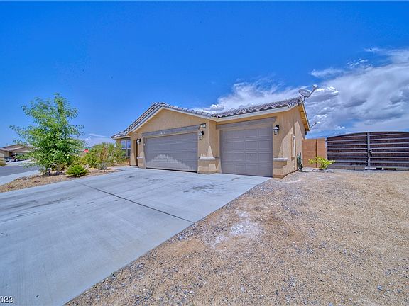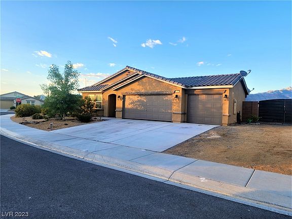 Surrounded by parks with a neighbor on only one side, home has an unobstructed view of majestic Mt Charleston from the great room and patio. Lovely 4 BR 3 car garage home built in 2018 has many upgrades including quartz countertops,R/O & water softener and walk-in pantry. In addition, the owner just replaced all flooring with vinyl plank in the living areas and new carpet in the bedrooms. New interior paint and draperies complete the color scheme in shades of light gray and white. Located on one of the largest lots in Burson Ranch, nearly 1/3 ac, the corner lot features a block wall in back with an RV gate and full RV hookup w/50 amp service. Home is situated on the lot to provide maxiumum shade with the patio on the north side. A new pergola covers the extended rear patio. Professionally landscaped backyard includes brick walkways to a gazebo, trellises with flowering vines and a brick planter with roses. Solar and twinkle lighting throughout.The effect is serene and enchanting!