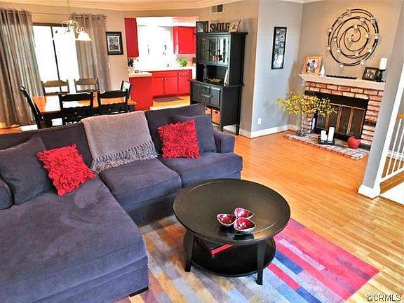 Lovely town home in Los Alamitos! All the quality upgrades and features you're looking for . . . Open and spacious end unit with high smooth ceilings, wide crown moulding and recessed lighting just to start. Warm, gas burning fireplace, updated kitchen with garden window and plenty of storage. 2 master suites - large walk in closet plus a wall of closets in one. Inviting balcony with sliding door access from the dining area - perfect for a BBQ or to sit and enjoy your coffee. Double attached garage with access directly into your home. Large laundry room with nice deep wash sink. Huge - very deep - storage closet under stairway. Centrally located with easy access to 605, 405 and 22 freeways with excellent shopping and dining nearby. Highly rated Los Alamitos school district. Shows beautifully!