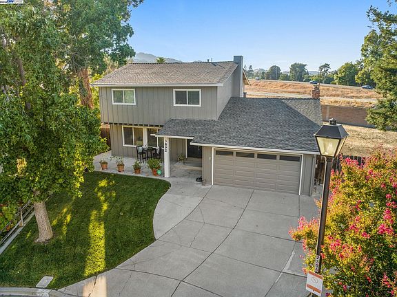 Beautiful Valley Trails home offers 4 bedrooms and 2.5 baths, situated in a desirable court location. Exterior freshly painted and has a new roof. This well loved home offers a huge backyard and side yard access. There is great potential for this oversized 10,670 sq ft, a blank canvas for buyers to make it their own and no rear neighbors. The kitchen has oak cabinets, granite countertops, with an electric stove cooktop, microwave, stainless steel sink and a large walk-in pantry. Cozy family room with wood burning insert fireplace with stainless steel flu in chimney. All new can lighting throughout, crown molding with laminate flooring and mirrored closet doors in bedrooms. Primary suite is very spacious. Easy access to downtown Pleasanton, BART, 580/680 freeways and close to the well known Pleasanton Fairgrounds.