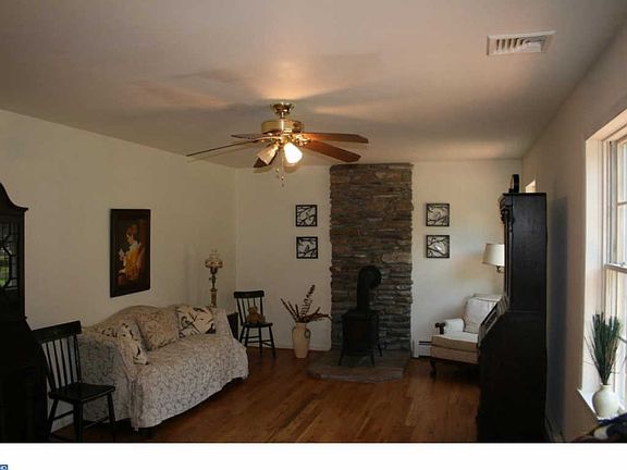 Set back in a private park like setting, surrounded by trees, this lovely Cape Cod style home sits on 3 acres of open yard and trees. Bring the horses, RV's, this property can house them all. The home has a sprawling front deck, 2 car garage, one garage 8' the other 9', with indoor access and partially paved driveway. Enter the foyer to LR/GrRm greeted by hardwood floors, plenty of natural light and a stone facasde wood stove, just completes this cozy space. The kitchen has plenty of cabinets, cook top island, vents out, gives you easy access to appliances and stainless steel kitchen sink that looks out over the sprawling back yard. Enjoy wildlife and the peace fullness you feel in this home. Oak beams line the kitchen, spacious eating area with sliding doors to the pack brick patio with cozy patio swing. Enter the garage from the back yard to the mud/utility room which boasts built in cabinets for storage, crafts or entertaining. Washer dryer occupies this space on the first floor for easy convenience. First floor has a spacious master plus another bedroom, plenty of closets and updated full bath with wainscoting, jetted tub and newer sink. Up the oak stair case are two other bedrooms with dormers and plenty of natural light. Full bath with shower stall makes it convenient for guests or family members. The open landing on the top of the stairs serves as a coffee station and sewing area. Great space, use your imagination. There is a full basement with bilco door, adds plenty of storage. Basement ready for you to make this space your own. The original home was pre-built by a highly supervised program thru the Upper Bucks Vo-Tech. All specs and records are available. Pella windows, 2x8 construction, Koehler fixtures, steel I-beam, 9 ft basement ceilings. The den, laundry room and upstairs were custom built additions. Tax records are incorrect on sq footage, does not include the upstairs and other additions. Total sq. ft approx. 2,500. Country living at its finest with a 25 min ride to Doylestown and within an easy commute to Bethlehem, Easton, Phillipsburg and major highways. Taxes under $5,000. First Public Open House on Sun. 7/30 1-3. Stop by and see this gem!