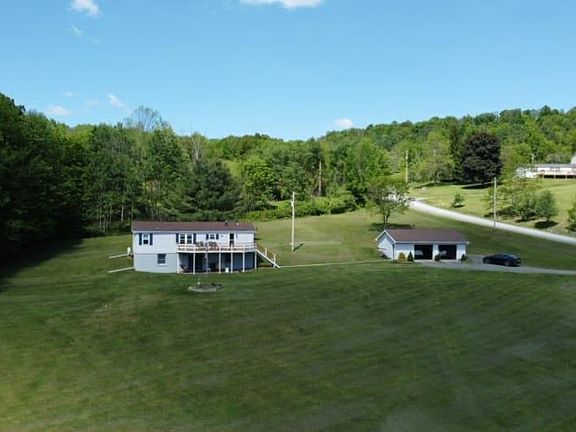 If you love and want a peaceful country setting this is your house. 5.5 beautiful country acres. Stunning views. Wildlife will trot across your land-deer, turkeys, & bear. Oversized garage w its own 100 amp electric box & wood stove. 4 year old roof on the house and garage. New gutters on the house & garage. Enjoy both the upper deck and the new lower deck. Inside you have 3 upper bedrooms and 2 baths including a master bedroom suite with a jacuzzi tub. Lower level has a big 4th bedroom & 1/2 bath, family room, utility & laundry. New refrigerator & microwave. New Water softener. OGM rights convey.