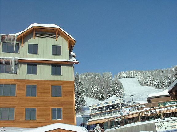 Remarks: Look no further ski enthusiasts! 2-bd, 2-ba ski in/out condo on Whitefish Mountain. Walk out the back door and the slopes lie ahead. Common areas include inviting lounge with large stone fireplace, secure underground parking, ski lockers, outdoor rooftop hot tub and fitness facility. 995 sf, 4th floor, fully furnished. Your winter wonderland awaits! Short sale.