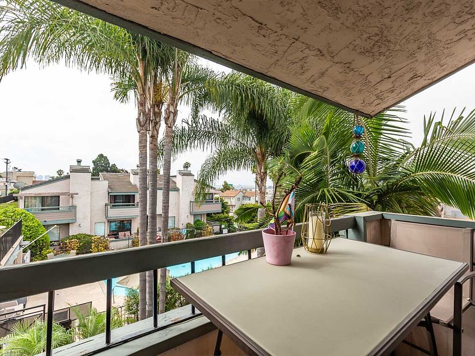 Townhome in Mission Hills with 2 bedrooms, 2 bathrooms, and a half bathroom. Walk through an archway to a renovated kitchen with quartz countertops and a stylish backsplash. Enjoy three balconies, including a main floor deck, perfect for indoor and outdoor living all year round. The master bedroom has high ceilings, a private balcony, and a custom walk-in closet. The second bedroom has its own bathroom. There's an extra-large garage for two cars, a spacious laundry room that can double as an office, and air conditioning. You can see views of the water and downtown San Diego from the home. Lots of natural light and a practical layout make this home comfortable. It's within walking distance to restaurants, Old Town, and parks, and it's easy to get to the freeway.