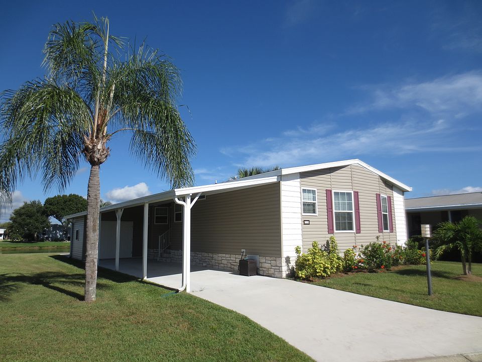 This 2 bedroom 2 bath with den, has an open floor plan with laminate floors, spacious living room dining area and kitchen with lots of cabinets, bedrooms are nice and large. Lanai is screened shed has double door, private patio in back, 2 car carport