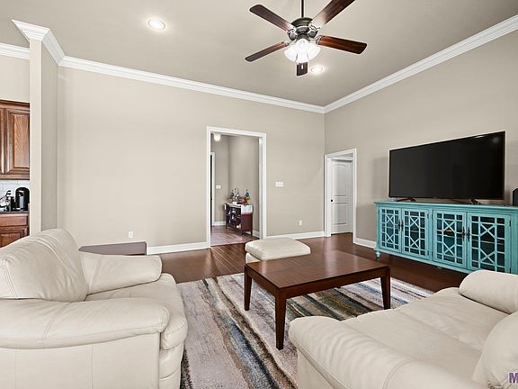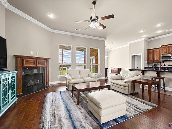 This floor plan is open with a triple split bedroom placement. It includes 4 bedrooms and 3 full baths. The most beautiful element of this home is the expansive pond view from the living, dining, kitchen, and the primary bedroom. There are beautiful wood floors throughout, and no carpet. The kitchen boosts 3CM granite counter tops, wood cabinets, stainless steel appliances, undermount sink, oil-rubbed bronze kitchen faucet. New roof installed in 2023. Radiant barrier decking in Attic, Crown Molding, Gas Fireplace, and Architectural Shingles. Attached garage with plenty of storage space. This home has been meticulously maintained. Imagine yourself coming home and relaxing on the covered patio in the back of the house gazing at the peaceful pond. Schedule your showing today!