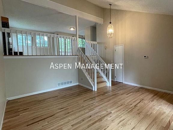 The main level offers a welcoming living room and a spacious primary suite. From the living room, head upstairs to the dining room, kitchen, and a convenient half bath plus a rare wood-burning fireplace that adds charm and warmth. Sunlight fills this space, which opens to a private backyard framed by mature trees and landscaping.