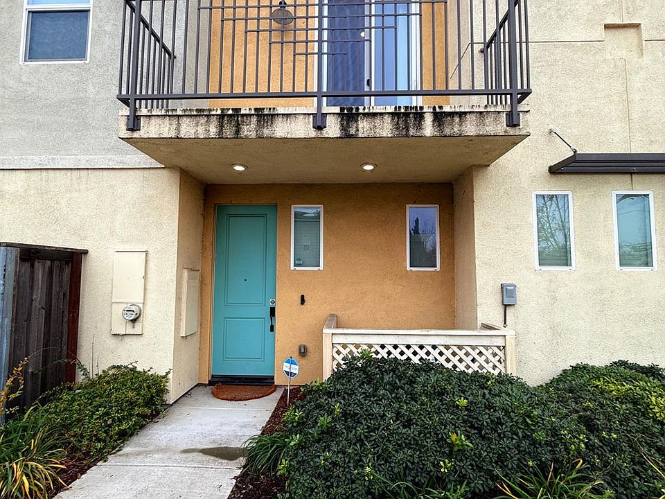 Beautiful 2 bedroom plus loft on ground floor and 2 bath town home featuring stainless steel appliances, dark brown cabinetry, island with farm sink and quartz counter tops. You'll appreciate the private balcony off the dining area as well as a 2 car garage, interior laundry with Washer/Dryer stacked included, tankless water heater. Conveniently located near shopping, restaurants, parks, and freeway access. Must See!