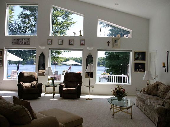 Gorgeous home on 16 Mile Lake! Great home for recreation and relaxation including the 18x34 heated swimming pool, hot tub, large deck, fire pit, 136 feet of sandy frontage on the popular 400 acre lake and pontoon boat for summer fun! Near ATV and snowmobile trails, ice fish, snowshoe and then relax in either the outdoor or indoor sauna for winter fun! The home has cathedral ceilings, open floor plan and a wall of windows taking full advantage of the stunning view. The master bedroom with a master bath has sliding glass doors to the deck. The loft bedroom/office has views of the lake as well. A separate office or craft room with laundry is on the first floor next to the master bedroom. The walk-out basement has another bedroom with a family room and bar area to entertain looking and again taking in the lake views. Every room takes advantage of the picturesque views. Keep all your toys in the 3 stall garage on this large lot. This floor plan has plenty of options including 1 or 2 vacation rental possibilities!