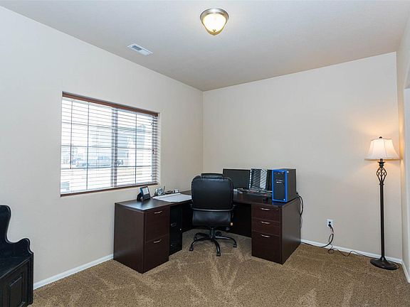 This beautiful 2-story home is conveniently located close to Ft. Carson, Schriever AFB, Peterson AFB, shopping, parks, and schools* Just inside the front entrance is an open Office with an archway leading you to the Formal Dining Room* This home has an open floor plan with the Kitchen, Dining Room, and Living Room all open making this area a great place for entertaining* The Kitchen has lots of cabinet and countertop space with seating* The Dining Room features a walk-out to the patio and Backyard* The spacious Living Room has a huge window that allows natural light to fill the room* There is a 1/2 Bath on the lower level for convenience* Just up the stairs is a huge loft that works great as a Family Room* The Loft is very bright and open* The spacious Master Bedroom has an adjoining 5-Piece Master Bath and walk-in closet* Also upstairs are 3 additional Bedrooms (one with a walk-in closet) and a full Bath* The Backyard is huge with lots of room to play, relax, or entertain*
