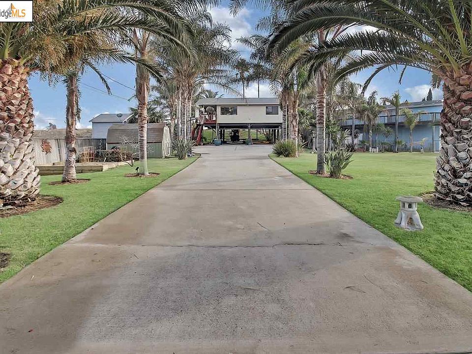 Great opportunity to enjoy the island & water life! Need a weekend getaway or new relaxing lifestyle? This is it, an awesome waterfront home, lot & boat-ready dock! Half+ acre lot w/2 homes & parcels. Main home is levee level & beautifully updated. 896 sq ft, 2 bed/1 bath. Kitchen w/slab granite, SS appliances, island & more. Gorgeous bath! Rich wood floors & high baseboards! Beadboard wainscotting & matching doors! Custom lights & ceiling fan/light fixtures! Mirrored closet doors! Pleated shades! Pellet stove! Laundry w/washer, dryer & shelves. Covered deck w/ceiling fan light fixtures. Relax & enjoy water views. 2nd is the ground level original home w/100+ sq ft, 1 room/1 bath. Perfect for guests/Airbnb. Huge lot with so much to love & enjoy! May be possible to build a new home on 2nd parcel. Mature tropical landscaping! Fire pit! Large shed! Add an oversized garage! Long driveway w/lots of room for you, your toys & guests. Fully fenced yard w/wiring to add gate opener. So much more!
