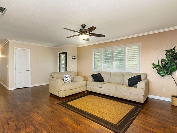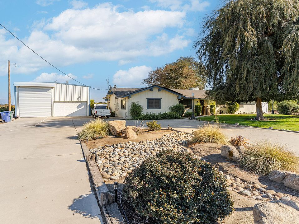 Looking for a beautiful one acre ranch! This house is close to town and freeway access. Great location for commuting to Fresno or Visalia. The house features: 3 good size bedrooms with a huge bonus room, 2 bathrooms, Crown molding, quartz countertops in the kitchen and granite in the bathrooms and an expanded patio for family outdoor gatherings. Both bathrooms have been recently remodeled. The master room has a nice size shower. There is a 40x32 shop which has a 14 ft. roll up door on the RV/boat storage side, plus room to park a car on the other side. Behind the white vinyl fence is almost a 1/2 acre.