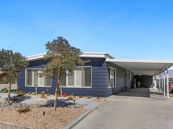 Beautifully remodeled home tucked in a great location with views of the mountain. Open concept kitchen/great room with island, stainless steel appliances, granite counter tops. Large living/dining room bathed in natural lighting with plantation shutters and new laminate floors. YOU OWN THE LAND. Large lot, covered patio, entertainers back yard with BBQ and view of the mountains. Covered tandem parking. 55+ Community. Clubhouse w/restaurant, bar, 18-hole executive golf course & pro shop. Three community pools, hot tubs & exercise room. tennis courts, pickle ball courts, library, recreation room and much more. Golf included in the membership.