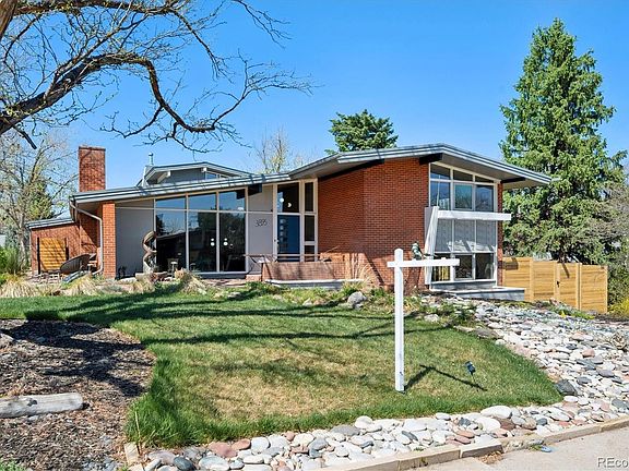 Mid-century modern home in the National Registry District of Arapaho Hills evokes the original design while bringing custom elements for today’s living. The beautiful layout of this home has been featured in magazines, books and Denver’s 2020 Modernism Week. The new updates of Eichler wall paneling, Heywood Wakefield built-in media center, cork flooring, terrazzo tile, Techno Block patio, planter boxes, sitting cubby, custom cable deck railing, designer kitchen and bathroom has turned it into an even better feature home. New glistening double paned clerestory windows flood the home with natural light in every room with the second story treetop bedroom/art studio/office above the 4 car tandem garage is the envy of any mid century modern home owner. Other features include the custom Mondrian inspired bank of windows in the dining room, interior and exterior Dutton & Brown lighting, professional landscaping and gas converted fireplace with modern clay ball insert. Choose your primary bedroom on the lower level with a walk-in closet and private patio or the upper bedroom with a large closet and spa-like walk-in shower for relaxing. For more relaxation wonder into the formal living/piano room with elongated brick walled fireplace and original built-in bench to cozy up in for reading. Two large decks will offer you more space for entertaining, patio gardening and enjoying star filled evenings from your new gorgeous home.