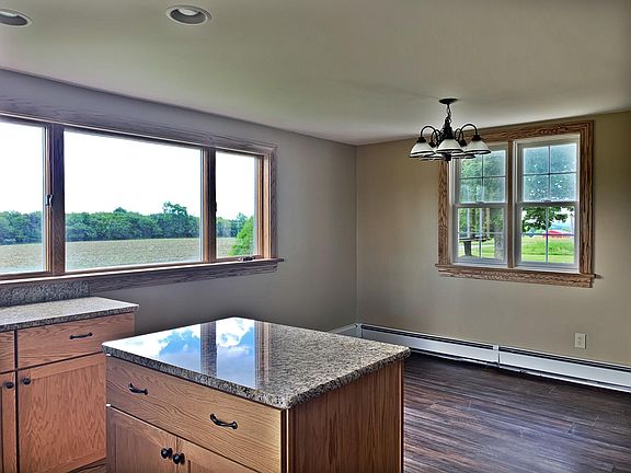 Beautiful country rental. This 2 bedroom lower apartment is the size of a small house! It sits among acres of pasture on a quiet country road. Completely refurbished, both bedrooms have large closets, and the bathroom includes washer and dryer hook up area. Kitchen comes with all appliances, including dishwasher and all soft close cabinets. There is a nice back patio overlooking a beautiful backyard. Rent includes all utilities, trash pickup, yard maintenance and snow removal. Sorry, absolutely no pets. Please don't ask for an exception. No smokers. Rental application, and, upon approval, first month's rent and security are required to secure lease. Application must be submitted before a showing will be scheduled. House has been re-sided since these pictures were taken. Please submit application before requesting a showing. ALL utilities, trash and snow removal are included in the rent. Laundry hook ups are located in the 2nd bedroom closet. Apartment located on the first floor. Large driveway and backyard shared with tenant in upper apartment. First month's rent and $1350 security are required to secure lease. One year lease required. SORRY, NO PETS OR SMOKING ALLOWED, please do not ask for exceptions.
