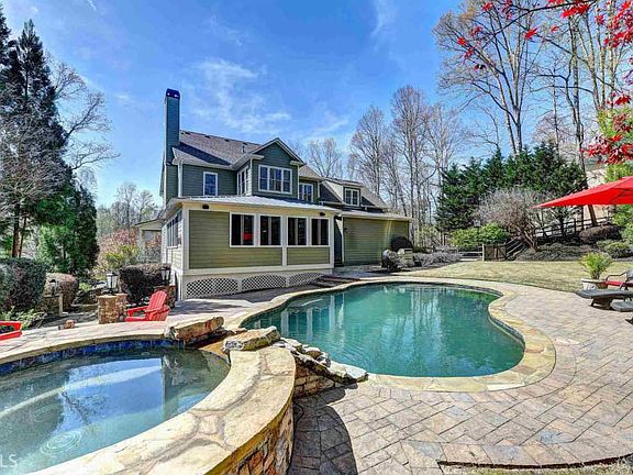 Southern River Estate on the Chattahoochee River with Saltwater pool & spa! Stacked stone, covered rocking chair front porch, enclosed spacious back porch with stacked stone fireplace! TEEN SUITE, 3 fireplaces, hardwood floors. Granite throughout. Master spa spacious suite, plantation shutters, new lighting, travertine tile custom baths. Custom media room w/ theater seats! Private gym! Fenced backyard with direct RIVER access. Private level cul-de-sac lot with ACRES of private green-space. Walk to platinum schools! Equestrian community with miles of hiking trails. Strong swim/tennis community.