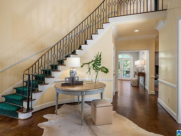This exquisitely spacious custom-build with enchanting character has 4 bedrooms, 5 full baths, 2 half baths, primely nestled in a peaceful cul-de-sac in guard-monitored, gated Lockerbie neighborhood of Mountain Brook. A verdant manicured lawn with lovely landscaping, beautiful stone and brick, and elegant architecture creates ample curb appeal. The grand foyer with striking curved stairway welcomes you into an accommodating, potential-packed floorplan that flows graciously for everyday living and idyllic entertaining. Hardwood floors, detailed ironwork, plentiful windows, high ceilings and custom millwork highlight timeless style in the expansive spaces. Adding to its amenities, the home boasts a sizable eat-in kitchen, numerous fireplaces, French doors, well-appointed bedroom suites, main-level laundry, 3-car garage, and a finished basement with kitchen. The sprawling deck and outdoor spaces enhance the inviting property's warmth, making for a picturesque setting to call home.