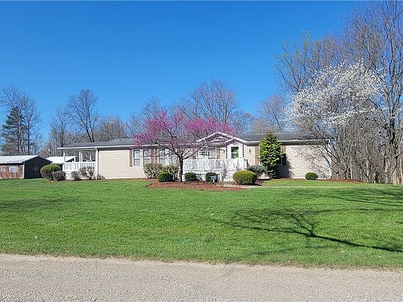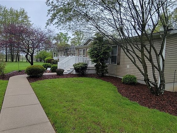 Beautiful 2001 Manufactured home with poured wall basement, 2 stall garage 24x36, she shed 16x24. 4 acres with pond, nice flat yard, several variety of fruit trees.
