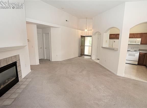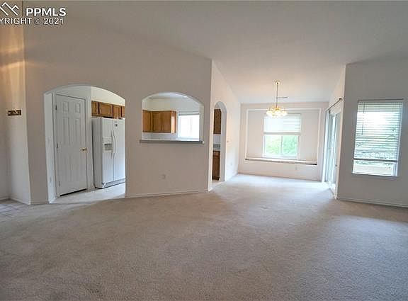 Located in desirable northeast Colorado Springs this very clean second story condo has huge vaulted ceilings, an west-facing covered porch, separate dining and laundry, and includes all appliances. Well cared for gated community has a club house that includes an exercise room, gathering area, and outdoor pool with a hot tub. Great floor plan is bright and functional plus includes central air, walk-in closets, a pantry, and a gas fireplace. Close to all amenities rent includes the HOA dues, trash removal, and the use of the facilities. Very secure and private plus has one assigned carport and plenty of additional parking.