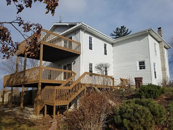 Country living. Unique historic home with gorgeous view of Indiana farm country, rolling hills and wild life. Proximity to numerous lakes. Lots of living space and ready to move in. 2 living rooms. Living room and very large master bedroom access to triple wooden deck/patio. 2 staircases. Mature trees. Many updates recently completed. There is no shortage of living space here. Three level deck that spans the entire back side of the home. Basement that could easily be finished for more living space.