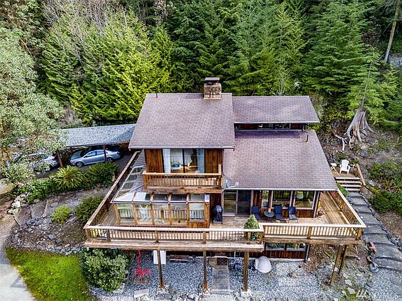 Peaceful Serenity at it's finest! This charming one of a kind home will enchant you from the moment you step inside. Secluded on 2.5 lushly landscaped acres,yet allowing spectacular sunset views over Burrows Bay and beyond. Built in 1986 using lumber from the cedar trees logged off the property. The Norwegian owner enjoys the Russian stove designed to provide warmth and comfort during the cold winter evenings. The very popular "Troll House" is included which could continue as a vacation rental.