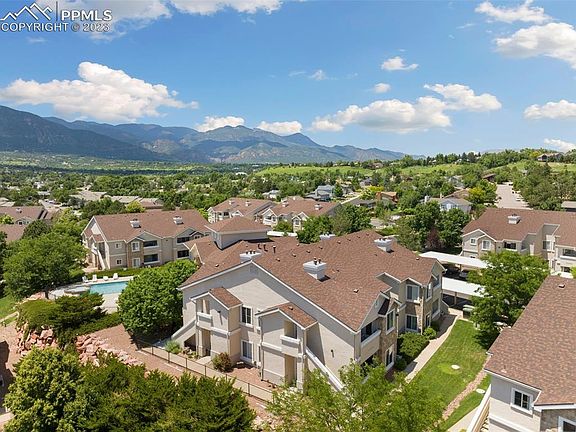 Fantastic upper level residence with mountain view in attractive, well-kept gated condominium community. This condo is located in arguably one of the the best locations in the whole community. Two bedroom, two bathroom, one car garage AND one assigned covered carport space. Wonderful balcony with storage closet. Great place to catch those spectacular Colorado sunsets. Dining room overlooks the pool and has a great view of Cheyenne Mountain. Light, bright, open, private, perfect place to call home. This home is well-located with easy commute to I-25, Fort, Carson, downtown and all Colorado Springs has to offer. There is also a pool, clubhouse and exercise room just a stones-throw away. One pet allowed (see listing) 30 lb. Weight limit.