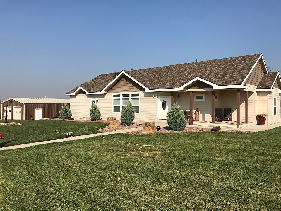 This 2007 Ranch Style home is located on 8 acres northwest of Wiley, Colorado. This home features an 1836 sq. ft. open concept floor plan with 9 foot ceilings. It includes custom stained glass windows throughout the house as well as stainless steel appliances in the kitchen. This house has many trees and 1.25 acres of grass around the house. The 30x40 garage is fully insulated and includes shelving and 2 electric garage doors. The wrap around porch is a beautiful place to relax and the patio with outdoor fire pit is the perfect place to entertain and BBQ.