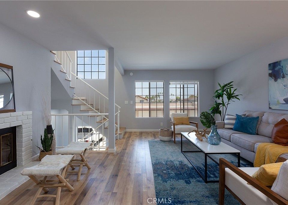 This June 2023 remodel is a great place to call home! The beautiful new laminate flooring throughout is classy and inviting in the warm natural wood hues.! The freshly painted walls and fireplace show off the flooring as well as the abundance of natural light throughout this home! The kitchen has been updated with white quartz countertops, freshly painted white cabinetry, new stainless steel appliances including a gas stove, microwave and dishwasher plus recessed lighting. The garden window sits above the new sink and is an added bonus. The living room is spacious with a separate seating area by the fireplace. The dining area shares the same open living space and has sliding glass doors to the private patio. On the third floor (garage is the first floor, living space on the second) you will find 2 master bedrooms with their own bathrooms. The larger of the two bedrooms has a brand new master bath with a stunning tiled shower, a gorgeous glass shower door and a dual sink vanity. All 3 bathrooms have new recessed lights, fans, mirrors with the LED lighting and toilets. The two car garage has direct access to the home and also has a separate laundry room. Low HOA! 12 unit complex! Fabulous school district! Great restaurants, shops, churches, schools and parks nearby! Conveniently located near the 605,22, 405 and 91 freeways. Don't miss out on the fabulous opportunity to live in Los Alamitos!